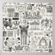 Resumen de un patrón impecable sobre el tema de objetos de arte, muebles y antigüedades. Fondo vintage con bocetos negros y dibujos de estilo retro. abstracto, boceto, vintage, barroco, edificio, escultura, antigüedades, arquitectura, flor, mobiliario, llave, patrón, retro, ángel, antigüedades, arte, fondo, negro, caduceus, clasicismvintage, retro, ilustracion,