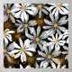 Característica de diseño en un patrón de floral de margarita abstracta en blanco, negro, amarillo y dorado. Perfecto para cualquier diseño de decoración casera, Moderna, Elegante, minimalista y rústica decoración botánica.