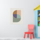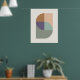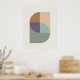 Un poster abstracto minimalista y moderno con un diseño geométrico elegante con colores mudos de rosa coral, naranja rugoso, morado, azul suave, verde sabio y gris suave natural. El accesorio perfecto para una casa contemporánea mínima.