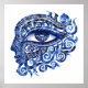 Un ilustracion de un mal ojo griego abstracto y una llave griega dentro de una cara. Que es el símbolo griego y turco de la protección.