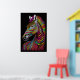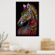 Resumen Pintura colorida de una cebra sobre un fondo negro. La relación de aspecto es de 2:3 Se diseñó para imprimirse como 24"x36"
