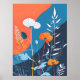 "Resumen Vivid Blooms" muestra varias flores y follaje coloridos en un fondo vibrante. El diseño combina elementos naturales con un estilo artístico moderno, creando una experiencia visual sorprendente.