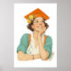 Una joven y alegre viga con orgullo en este ilustracion de graduación de estilo vintage, con una gorra naranja adornada con flores amarillas, que evoca un espíritu nostálgico y optimista.