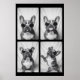 Sumérjase en su espacio con un toque divertido en este encantador poster de estilo fotobús que cuenta con cuatro fotos francas de un bonito Bulldog francés. Cada instantánea captura una expresión diferente -desde curiosas inclinaciones de la cabeza hasta molestias descaradas- que trae personalidad y diversión a cualquier habitación. Perfecto para los amantes del perro, los fanáticos franceses o los amantes de la blancura en la decoración.