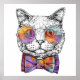 Gato dibujado a mano con anteojos y Bowtie en Poster