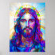 Arte de Cristal Manchado de Jesucristo con un lindo conejito de Pascua y vibrantes huevos de Pascua. Animales de conejo para la resurrección de la religión cristiana. Feliz Pascua con este genial retrato de Jesús.