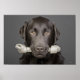 Retrato de estudio del labrador de chocolate transportando hueso en la boca | Justin Paget | AssetID: 116363551