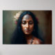 Retrato pintado de la cara de una mujer india con una flor de loto en el pelo y un diseño de henna en la frente. Este es otro diseño original de Hámster de Amueblado.