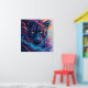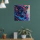 Arte digital de una pantera feroz ilustrada con patrones abstractos vibrantes y coloridos, que transmiten energía y fiereza.