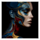 Un retrato abstracto mostrando el perfil de la cara de una mujer utilizando una técnica de vidrio manchado. Una parte de su cara y cuello están adornados con intrincados diseños abstractos con líneas doradas y relleno texturizado. El espectro completo de colores crea una obra maestra vibrante y artística, convirtiendo esta obra en una pieza de arte verdaderamente hermosa y cautivadora.