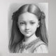 Póster Retrato del Chica de dibujo de lápiz blanco y negr