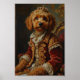 Un encantador retrato real que presenta al Cockapoo retratado como un miembro noble de la corte real. Inspirado en pinturas clásicas del renacimiento, el diseño destaca el pelaje rizado y esponjoso de la raza y la expresión juguetona con atuendo aristocrático elegante y detalles regios.