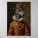 Un elegante retrato real que presenta al gracioso galgo retratado como un noble renacentista. Inspirado en pinturas clásicas europeas al óleo, el diseño destaca la delgada complexión de la raza y la postura regia con atuendo aristocrático y corona lujosos.