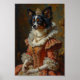 Un elegante retrato real que presenta al agraciado Papillon retratado como una princesa francesa. Inspirado en pinturas al óleo clásicas europeas, el diseño destaca las icónicas orejas de mariposa y el pelaje sedoso de la raza con atuendo real lujoso y tiara enjoyada.