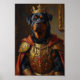 Un imponente retrato real que presenta al poderoso Rottweiler representado como un guardia imperial. Inspirado en pinturas clásicas del renacimiento, el diseño destaca la complexión muscular de la raza y la expresión confiada con armadura ornamentada y detalles reales regios.