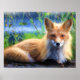 Póster Retrato Rojo Fox De Un Poste De Pintado De Acuarel