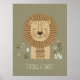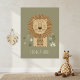 Completa la decoración de tu safari con esta encantadora y reconfortante impresión del retrato de un león. La obra de arte presenta a un león dulce y estilizado rodeado de una magnífica melena a rayas. Situado sobre un fondo verde oliva apagado y acentuado por elementos botánicos sutiles, el diseño es a la vez moderno y suave. La leyenda positiva, "FUERTE Y DULCE", hace que esta sea una pieza de decoración inspiradora para fomentar la valentía y la amabilidad en un niño pequeño. Este póster es una excelente opción para un dormitorio o sala de juegos de temática neutral o de jungla. Parte de nuestra colección coordinada 'Kid's Safari Decor'. Nota: el diseño se adaptó a partir de contenido generativo.