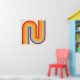 This artwork channels a retro graphic spirit, forming the letter‑like curve with parallel bands of red, orange, yellow, light blue, teal, and purple. The layered arcs flow in harmony, evoking the bold optimism of 1970s design. Set against a soft beige background, the vibrant rainbow palette stands out with clarity and rhythm. The composition balances simplicity and dynamism, creating a timeless visual that feels both nostalgic and modern.