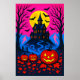 Forget the quiet creeps and spooky shadows; this is Halloween with an electric pulse! In this vibrant pop art vision, a classic haunted house scene is completely reimagined. A hot pink sky explodes behind a glowing yellow moon, while electric blue mist swirls around friendly, cartoonish ghosts. This artwork is special because it trades traditional horror for high-energy fun, blending the bold lines of classic comic books with a retro 80s neon aesthetic. It's the perfect statement piece for a lively Halloween party or for anyone who believes the spooky season should be celebrated with unapologetic color and style. This isn't just a decoration; it's a bold and brilliant celebration of all things fun and festive.