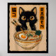 Póster Retro Anime Kawaii Black Cat Eating Ramen Noodles