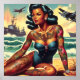 Póster Retro Beach Pin-up
