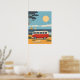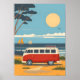 Capture the ultimate spirit of adventure with this retro-inspired illustration of a classic red camper van by the sea. Its nostalgic color palette and clean minimalist design perfectly embody summer vacation vibes, making it a stylish addition to any beach house or modern living area.