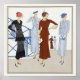 Una huella Art Déco de mujeres paradas al lado de una escalera con vestidos, gorras y tacones. Tal vez esperando un desfile de moda. Gran impresión enmarcada y entregada como regalo.