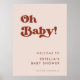 Oh bebé: cartel de bienvenida para una ducha de bebé. Un tema de moda retro: adopta este diseño tipográfico vintage y elegante para tu papelería Baby Shower, con un tema de color rosa melocotón. Fácil de mezclar y emparejar con nuestra papelería similar disponible en naranja quemado, terracota y azúcar marrón. Personalizable completamente los colores y fondos de texto.