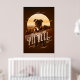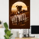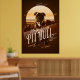 Sorprendente diseño poster de estilo retro de un Toro de Pozo americano con un fondo montañoso y un gran gráfico solar todo en tonos monocromos de oro a marrón. Una gran fuente decorativa nombra a la raza del perro. Busque ID754 para ver otras opciones de color y razas de perros adicionales en este estilo.