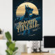 Sorprendente diseño poster de estilo retro de un Doberman Pinscher con un fondo montañoso y un gran gráfico solar todo en una llamativa paleta de colores de oro a través del azul prusiano. Una gran fuente decorativa nombra a la raza del perro. Busque ID754 para ver otras opciones de color y razas de perros adicionales en este estilo.
