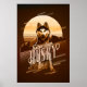 Sorprendente diseño poster de estilo retro de un Husky Siberiano con un fondo montañoso y un gran gráfico solar todo en tonos monocromos de oro a marrón. Una gran fuente decorativa nombra a la raza del perro. Busque ID754 para ver otras opciones de color y razas de perros adicionales en este estilo.
