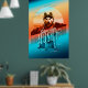Sorprendente diseño poster de estilo retro de un Husky Siberiano con un fondo montañoso y un gran gráfico solar todo en una sorprendente paleta de colores de naranja quemado a través del turquesa y el oro. Una gran fuente decorativa nombra a la raza del perro. Busque ID754 para ver otras opciones de color y razas de perros adicionales en este estilo.
