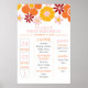Poster de primer cumpleaños con un groovy retro floral con un tema en naranja y rosa.