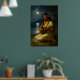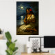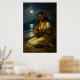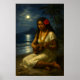 Póster Retro Hawaiian Girl & Ukulele On A Moonlit Beach