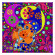 Flores hippies de colores vivos retro con un gatito oculto. Para una decoración más colorida, visita el resto de la tienda.