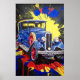 Póster retro móvil, coche, cosecha