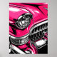 Póster Retro Pink Classic Car Front Pop Art Illustration