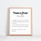 Póster Retro Reglas de piso de baile Rótulo Boda Minimali
