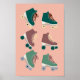 Póster Retro Rollerskates Green Dusty Pink Groovy Guay