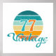 Retro vintage style sunset with 77 (1977) typography center in the style of the 1970s and Vintage in a scripted typographic design below in a distressed effect.