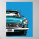 Póster Retro Teal Classic Car Front Pop Art Illustration