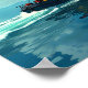 Póster Retro Tugboat Nautical Coastal Landscape Scenic