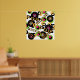 Fabuloso dibujo de arte moderno con poster; discos de vinilo inspirados en retro, música pop en rosa, verde, naranja, negro y blanco. Da a tu habitación el aspecto de wow con esta imagen de música divertida.