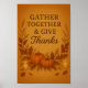 Trae calor a tu casa con este poster de Acción de Gracias "Reúnete y dale las gracias". Con una tipografía elegante con calabazas, hojas de otoño, trigo y velas sobre un suave fondo naranja quemado, este acogedor diseño de otoño añade un toque de gratitud y encanto a cualquier espacio. Perfecto para reuniones de Acción de Gracias o decoración de temporada en casa.