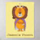A la venta está este adorable Poster Impreso del REY León de la Jungla con corona dorada y manto púrpura personalizado. Si no lo quieres personalizado, simplemente puedes eliminar el cuadro de texto.