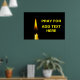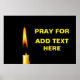 Lámpara de cera quemada de color amarillo contra fondo negro y un texto Reza por TEXTO AQUÍ. Puede agregar su propio texto. Para expresar solidaridad. Póster.