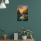 Póster Riberas rocosas y bosque otoñal al atardecer