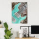 una imagen contemporánea de una guitarra Jackson sobre telas de cebra.