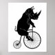 Silueta de rinocerontes montando una vieja bicicleta de moda. Ilustracion negro original.