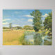 Un verano dorado se despliega a través de un campo danés, donde un río suave atraviesa campos llenos de grano maduro. Hans Andersen Brendekilde pinta este momento apacible con cálidos amarillos, suaves verdes y serenas reflexiones azules en el agua. El paisaje brilla bajo el sol de la tarde, evocando la calma y abundancia de la vida rural durante la cosecha.